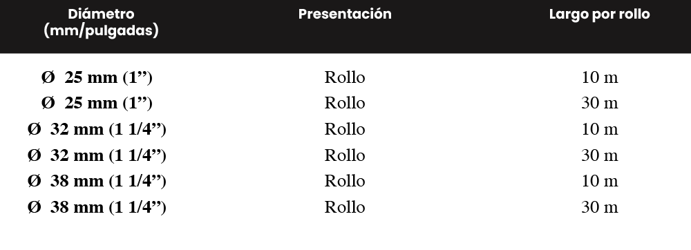 PEAD/HDPE (resistencia, flexibilidad, resistencia a abrasión y rayos UV).